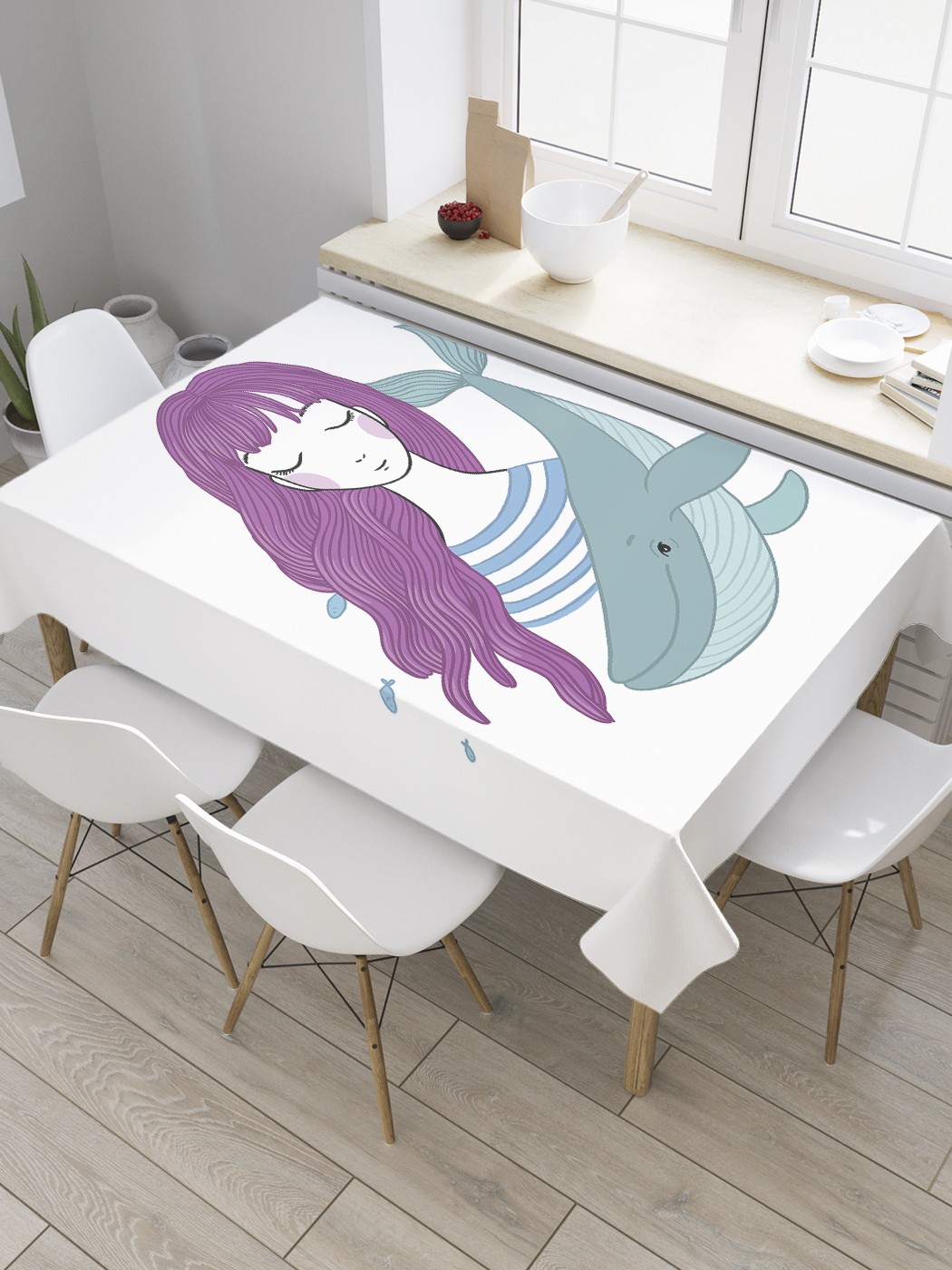 Скатерть прямоугольная JoyArty "Морячка и кит" из сатена, 120x145 см, Розовый, Морячка и кит