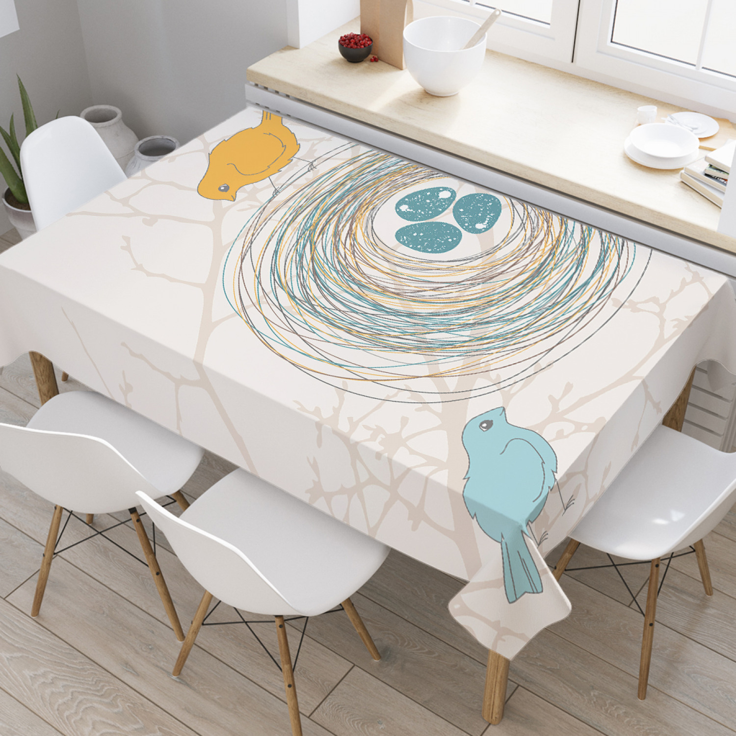 Скатерть прямоугольная JoyArty "Птичье гнездо" из оксфорда, 180x145 см, Голубой, Птичье гнездо