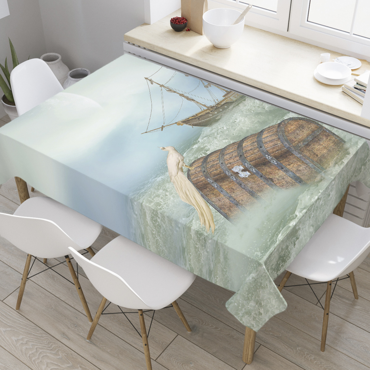 Скатерть прямоугольная JoyArty "Сундук с парусника" из оксфорда, 120x145 см, Зеленый, Сундук с парусника