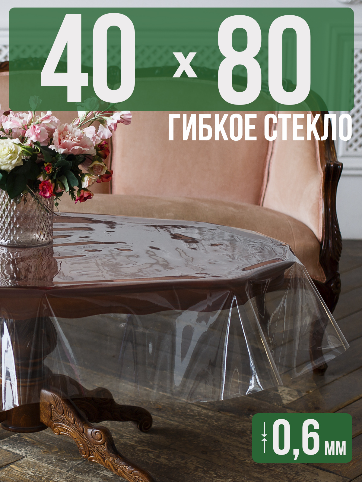 Силиконовая скатерть гибкое стекло из прозрачного пвх на стол 40x80см, толщина пленки 0,6 мм. Оригинальное решение защиты любой поверхности в Вашем доме: обеденный стол на кухне, или столешницы в столовой, или стеклянный журнальный столик. Гибкое стекло так же подойдет для защиты подоконника от желтых пятен, тумбы, или барной стойки, и даже защитит напольное покрытие от царапин стула. Жидкое стекло скручено в рулон и упаковано в толстую термоусадочную пленку, которая надежно защищает товар при транспортировке. Понятная инструкция подскажет как лучше разложить материал по рабочей поверхности ,и как подрезать в случае необходимости. Широкий выбор размеров и толщин дает возможность выбрать любой размер, подходящий специально для вашего стола, или взять чуть больше и подрезать. Мягкое стекло – это современный прозрачный материал ,который быстро расправляется на поверхности и легко принимает новую форму сразу после укладки. Уголки стола легко подрезать ножницами или канцелярским ножом ,для придания идеального вида. Мягкое стекло можно использовать поверх белой или цветной текстильной скатерти на кухне ,для защиты от пролитых напитков, так как материал является влагоотталкивающим. С помощью мягкого стекла Вы всегда будете видеть все свои заметки, если будете использовать его в качестве коврика на своем рабочем, или компьютерном столе в офисе. Это не только красивое защитное покрытие, но и защита детской мебели от повреждений и пятен краски, где дети ,занимаясь творчеством, могут рисовать или делать записи маркерами (не перманентными), а затем легко удалять их влажной тканью. Клеенка на стол на кухню имеет стопроцентную прозрачность, что подчеркнет красоту вашего стола, она не скользит , обладает высокой прочностью, не деформируется от горячей кружки (до +70) ,не теряет свои защитные свойства и стойкость к жировым загрязнениям долгие годы (срок использования более 5 лет), -Прочность - защищает любую поверхность от царапин и потертостей. -Влагоотталкивающая поверхность - не впитывает влагу и устойчива к загрязнениям. -Шумоподавление - снижает стук от посуды. -Прозрачность – подчеркнет дизайн вашей кухни и стола. -Термостойкость - выдерживает температуру до +70 (зависит от толщины) -Простота - не требует стирки и обслуживания. -Гибкость - можно свернуть для хранения и затем вновь разложить. -Долговечность - срок эффективной эксплуатации более 10 лет.
