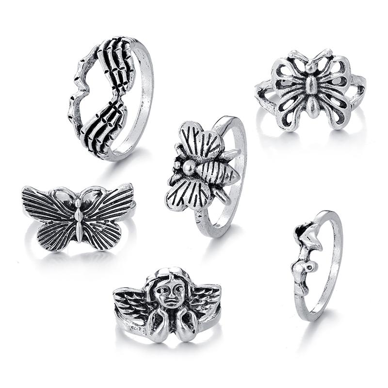Скелет Пальмы Хэллоуин Ужас Ангел Девушка Бабочка Выдолбленные Ювелирные Кольца Набор серебряный