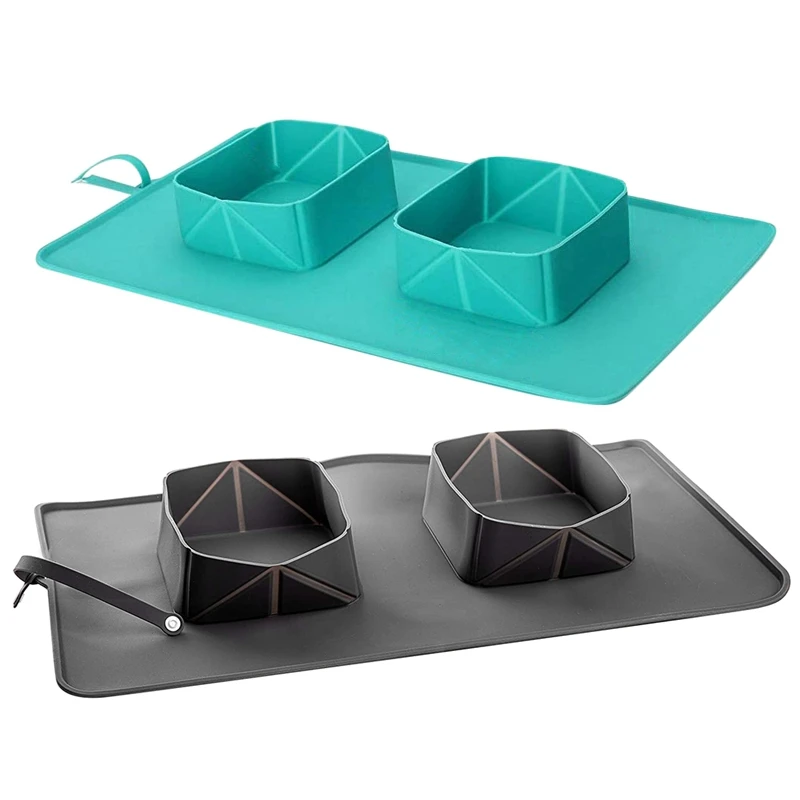 Складная Силиконовая миска для домашних питомцев, портативная двойная фланелевая поилка для путешествий и прогулок с собаками