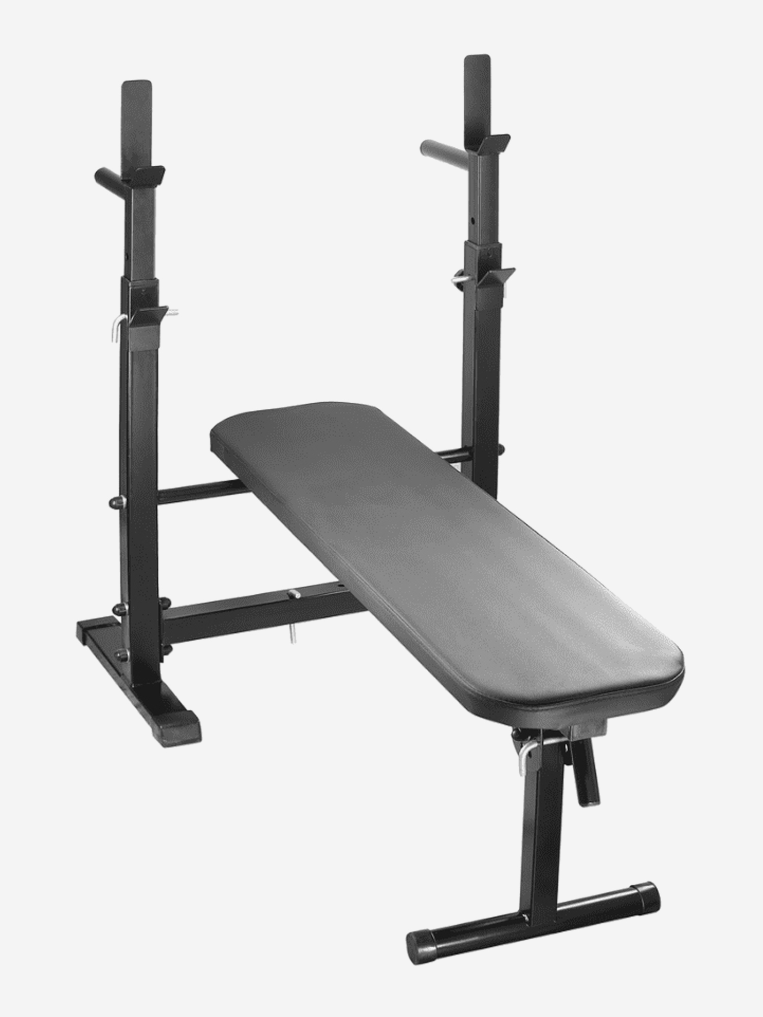 Неотделимая скамья со стойками теперь занимает минимум места и умеет складываться! Преимущества комплекта. Скамья для любых упражнений с гантелями и штангой. Нагрузка более 200 кг (скамья + стойки). Самая компактная скамья для дома: складывается в 1 движение (см. фото). Стойки можно отрегулировать по высоте и настроить под себя. С обратной стороны стоек есть брусья для отжиманий. Характеристики. Размеры в собранном виде 135x67x125 см. Размеры в сложенном виде 65х46х145 см. Профиль скамьи 50х50 мм, профиль держателя штанги 40х40 мм. Толщина металла 2 мм. Минимальная/максимальная высота подъема держателей штанги 96/125 см. Масса в собранном виде 23 кг.