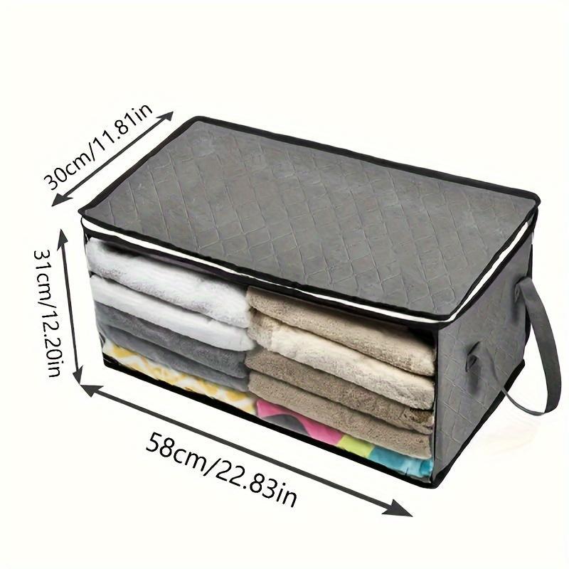 Складная сумка для хранения большой вместимости 14,27 галлона, серая, прямоугольная, современный стиль, прочная ткань, прозрачные окошки, крепкие ручки серый
