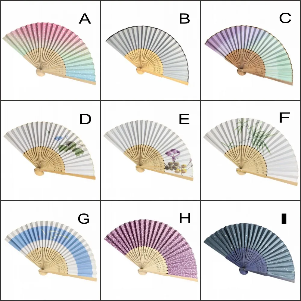 Складной веер, бумажный, в рамке в японском стиле бамбуковое, 12 шт.