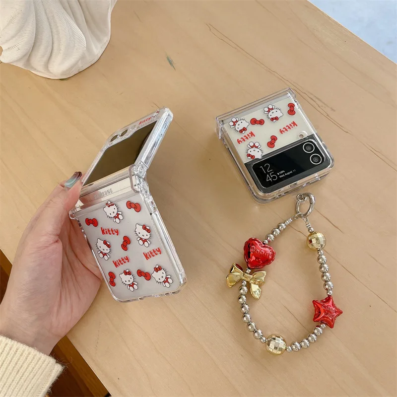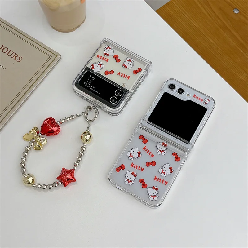 Складной жесткий чехол из трех частей для Samsung Galaxy Zflip5 Zflip4 Zflip3, чехол для телефона Sanrio Hello Kitty, игрушки для девочек