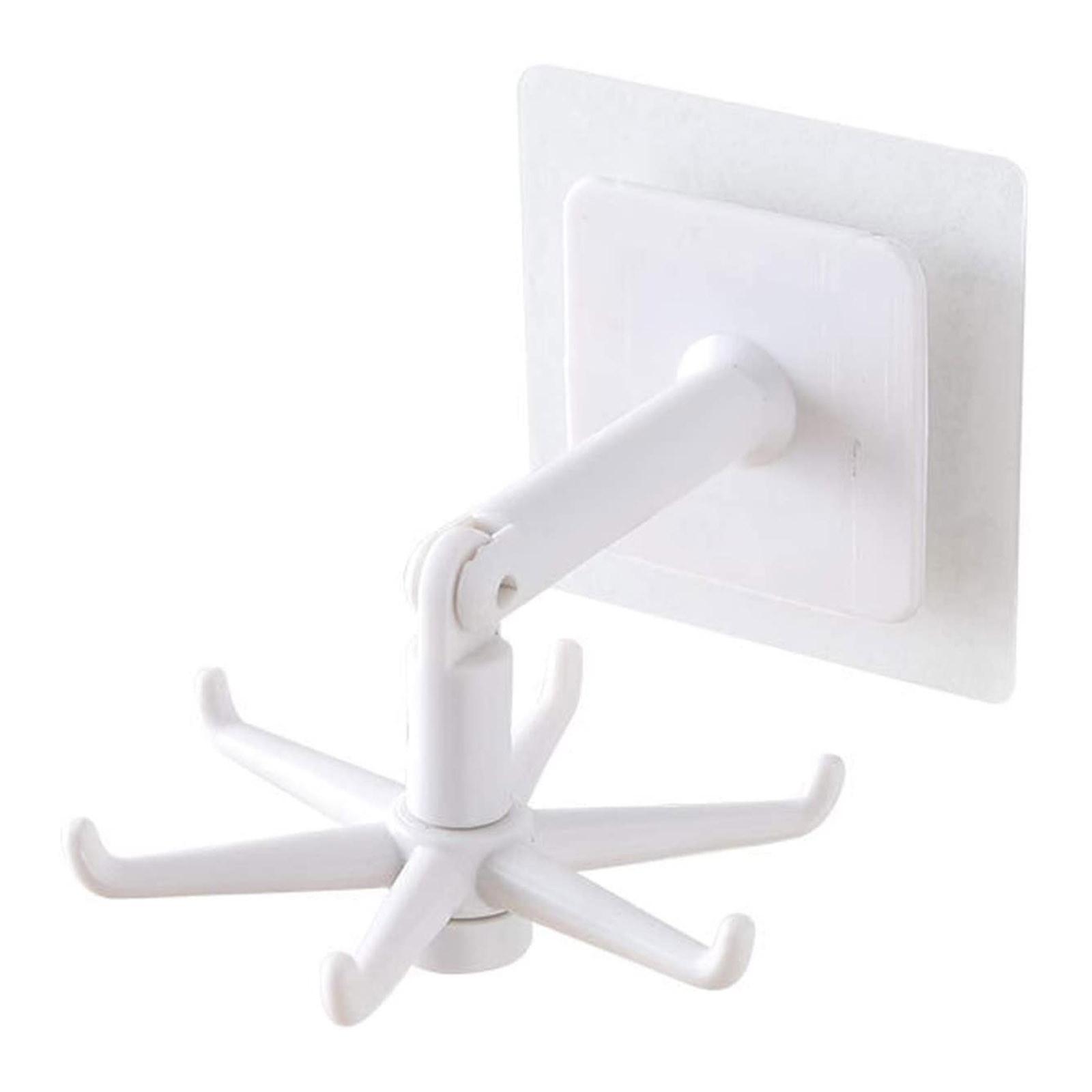 Складной крючок, вращающийся на 360 ° самоклеящиеся кухонные крючки, крючок для хранения на настенной полке WH белый