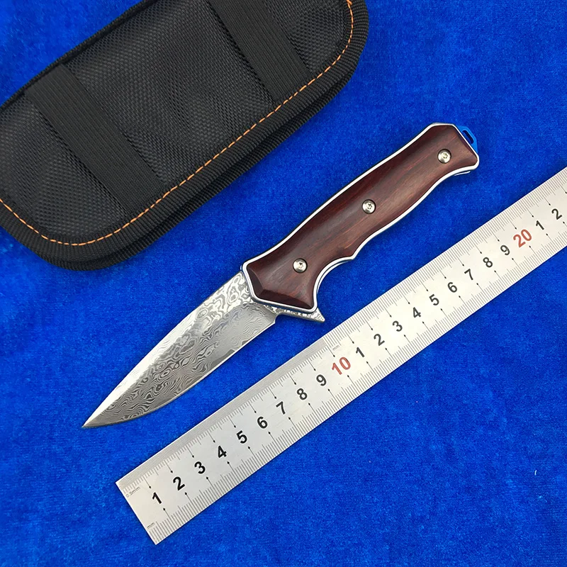 Складной нож LEMIFSHE ST1502, лезвие из дамасской стали с деревянной ручкой, карманные кухонные ножи для кемпинга и охоты, инструмент для повседнев...