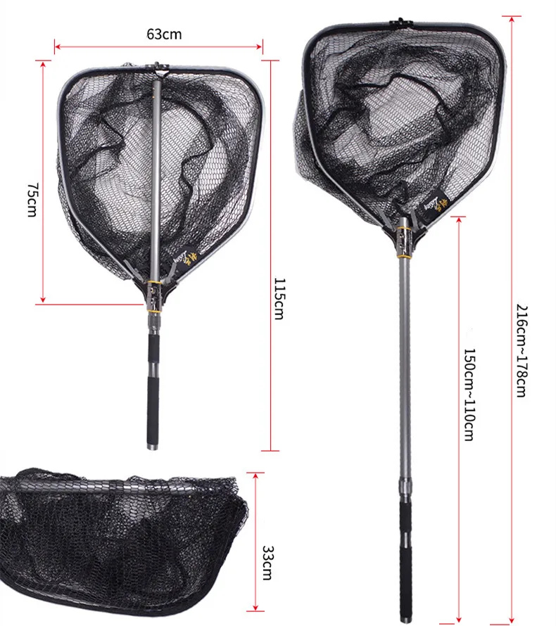 Super Strong Durable Aluminum Alloy Material Extendable Handle Collapsible Large Fishing Landing Net with PU Carry Bag, Black