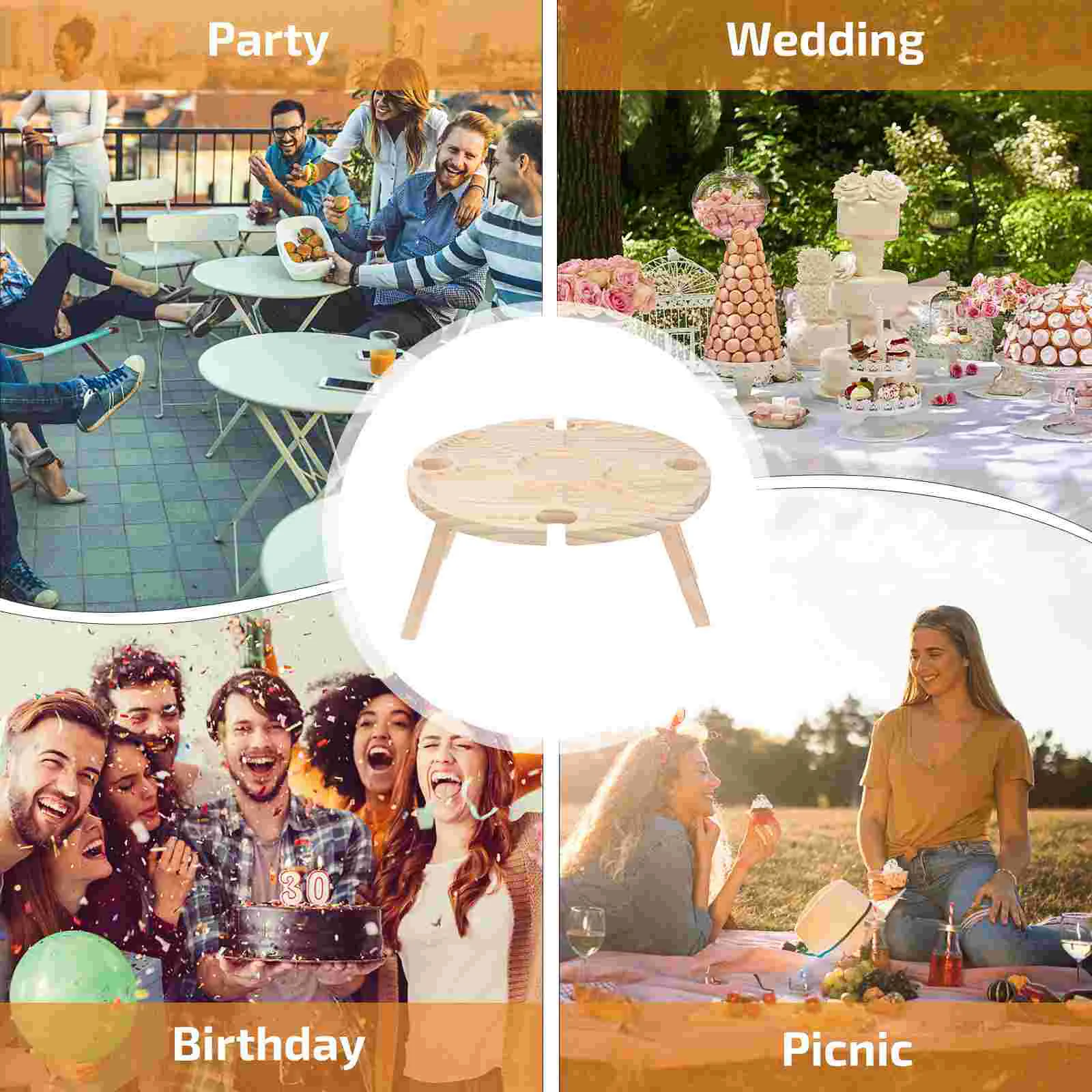 Складной поднос, стол для пикника, сервировочный поднос, Круглый сервировочный стол, складной пляжный стол для закусок и сыра, деревянный об...