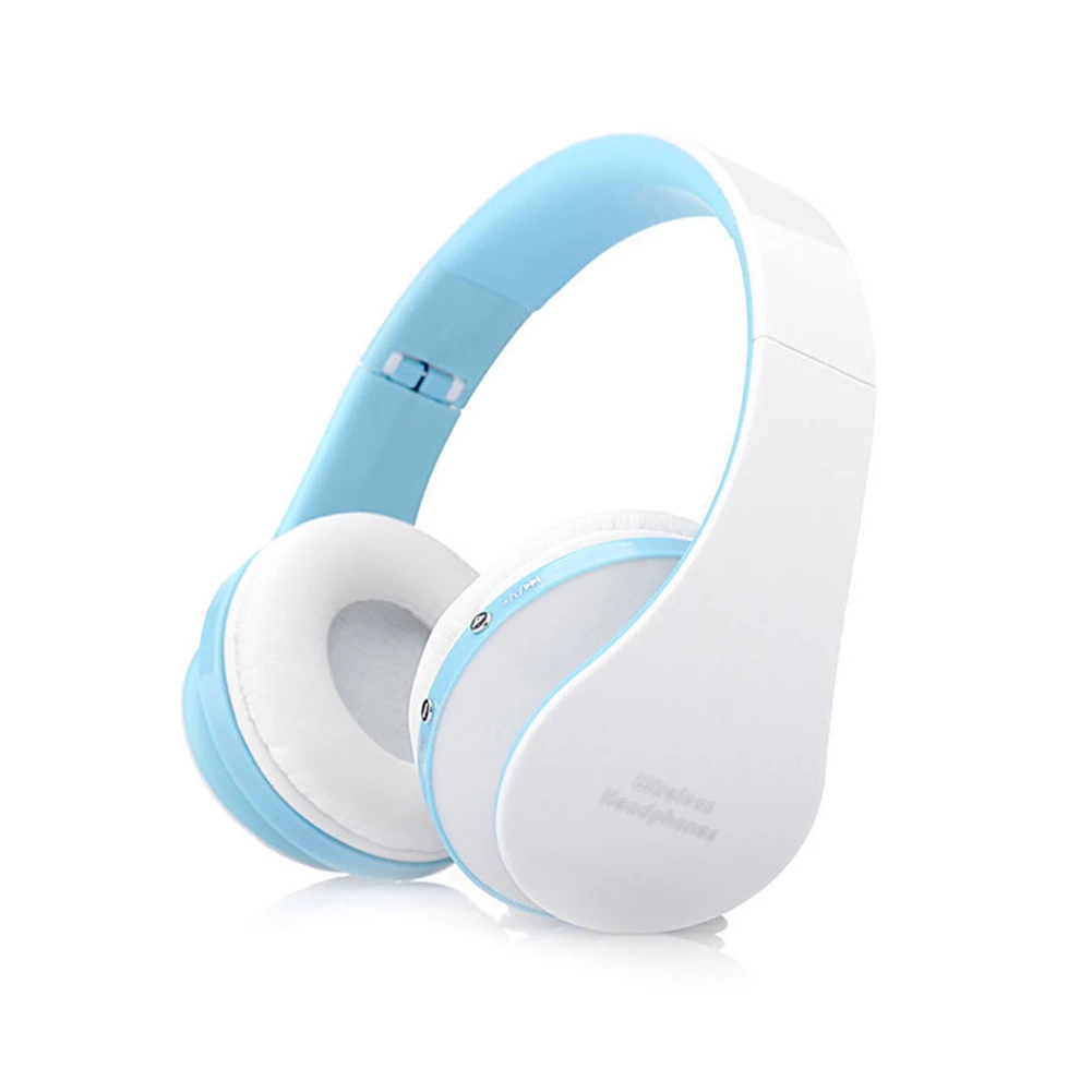 Складные Наушники Bluetooth, аудио игровая гарнитура, беспроводные наушники, большие наушники с микрофоном для телефона (белый, синий)