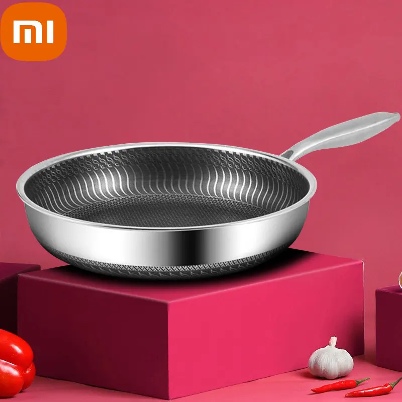 Сковорода антипригарная из нержавеющей стали Xiaomi, кухонная посуда для индукции и газа, кухонный ВОК из нержавеющей стали 304
