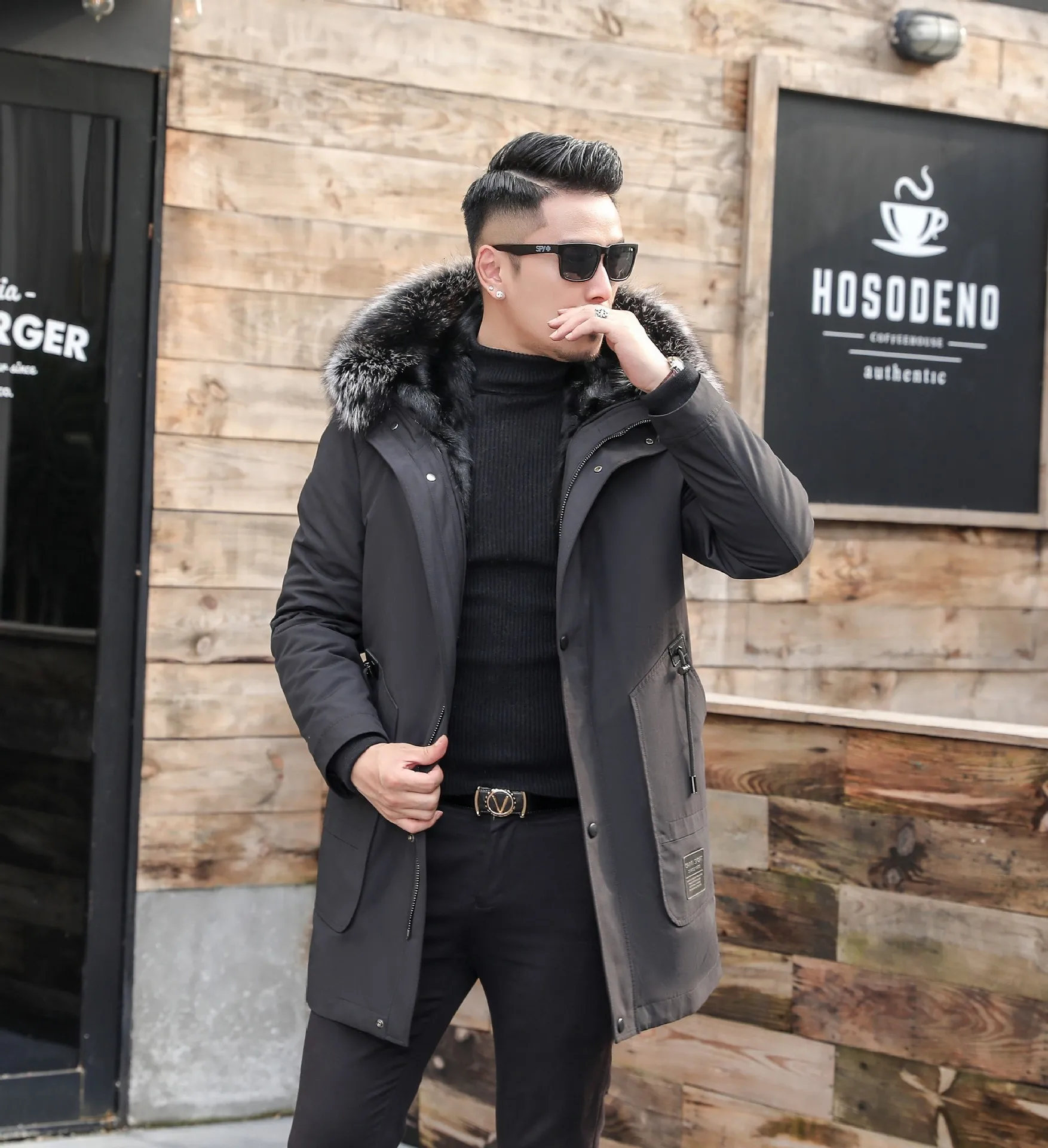 Quality Send Overcome Winter Long Fund Wool Inner Tank Silver Fox Nick Serve Men's Wear Leather And Fur Loose Coat Black 9319