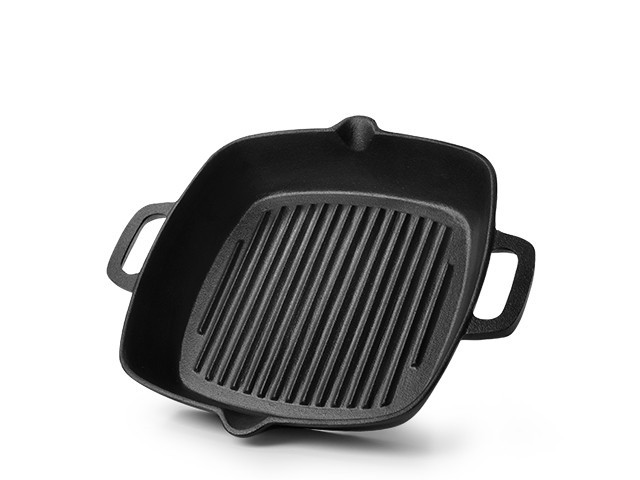 [html]Материал: чугун. Материал ручки: чугун Размеры: 26см x 26см Высота: 5 см Длина ручки: 3 см Общий размер с ручками 32x26x5 см. Нижний размер: 21x21 см Подходит для всех типов плит, включая индукционные. Подходит для духовки Рекомендуется особый уход после использования (смазка) Нельзя мыть в посудомоечной машине Производитель: Fissman[/html]
