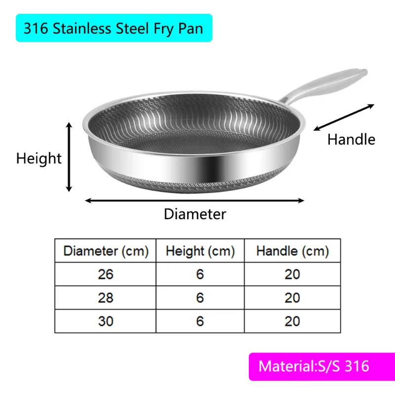 Сковорода для жарки 316 сковорода для ВОК из нержавеющей стали Двусторонняя сотовая сковорода