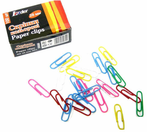 Скрепки канцелярские 28 мм цветные 100 шт 326560