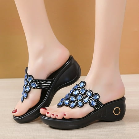 WUYAZQI New summer large women's slippers fashion diamond flat women's sandals open toe flip flop women's beach shoes Q8