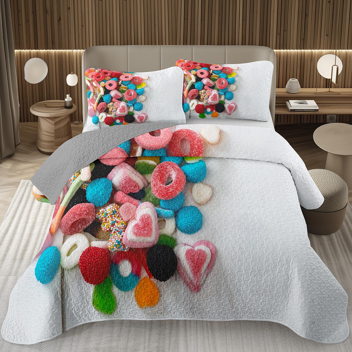 Сладкий Конфетный Комплект Квилтов для Девочек Мальчиков Подростков, Комплект Покрывал на Кровать на Тему Леденцов Кинг Десертное Стеганое Покрывало Мультяшный Стиль Покрывало на Кровать EU Single 135x200cm