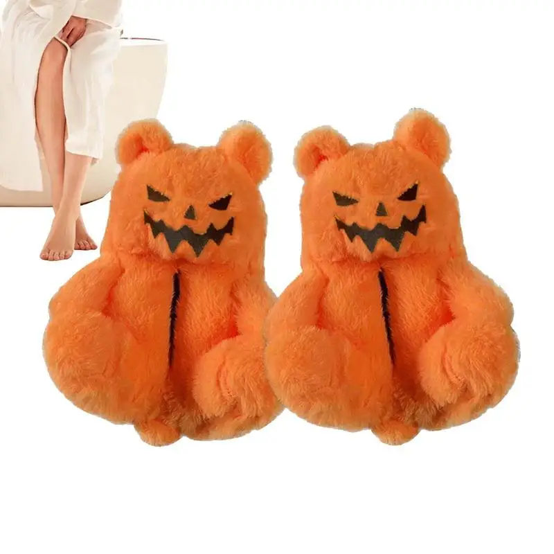 Сланцы для Хэллоуина, пушистые тапочки с медведем, тыквой, теплые Нескользящие, для путешествий, шоппинга