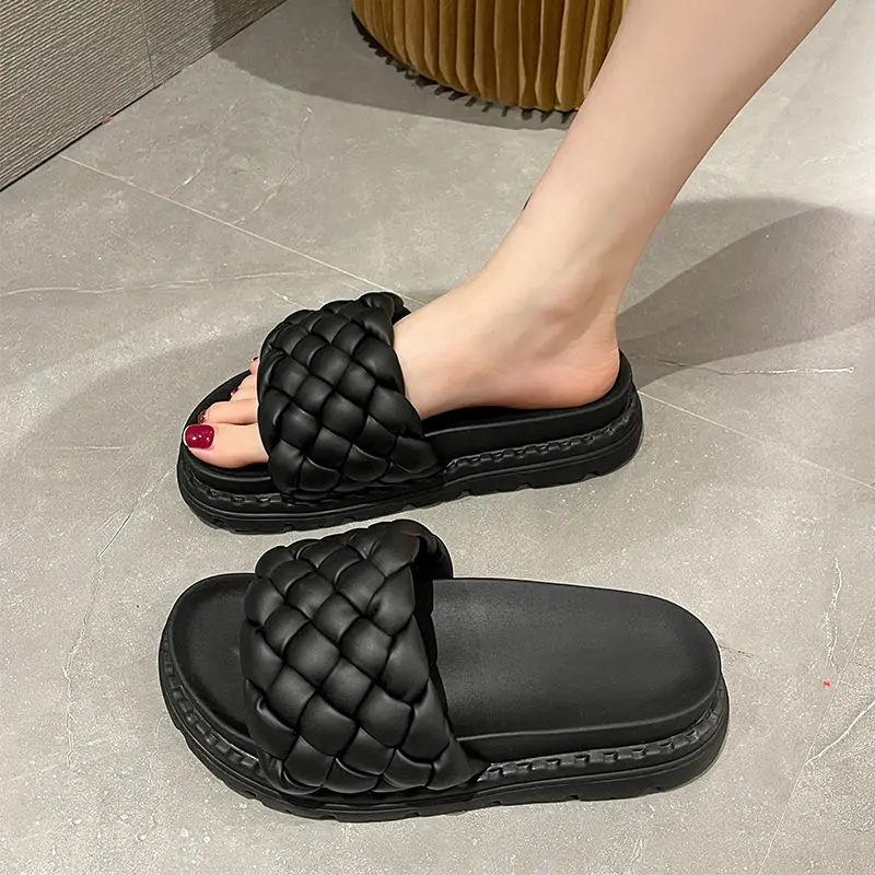 Сланцы женские на платформе, роскошные Шлепанцы из искусственной кожи, повседневная обувь на плоской подошве, сандалии, лето 2023