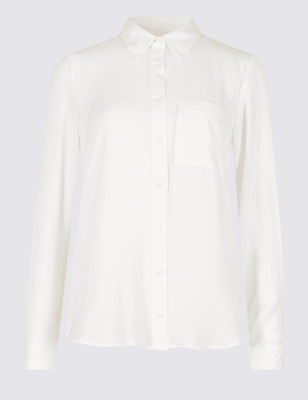 Слегка приталенная классическая рубашка с сатиновой отделкой, Слоновая кость