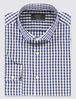 Слегка приталенная рубашка Easy to Iron из чистого хлопка в клетку гингам с воротником-визиткой