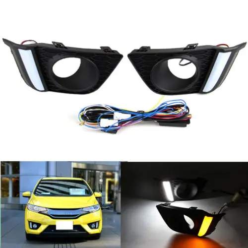 For Honda Fit 2014-2016 LED DRL Daytime Running Lights Fog Lamp Turn Signal