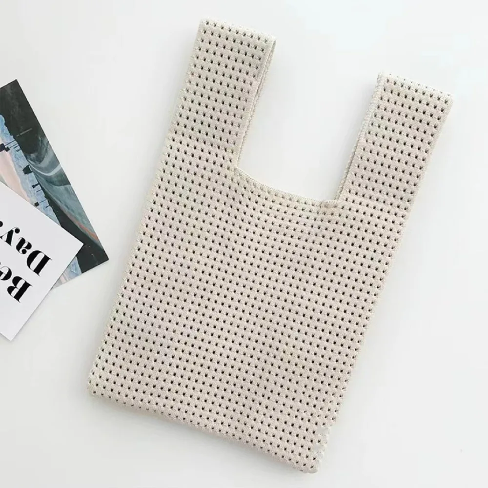 Korean Style Retro Knit Handbag Large Capacity Hollow Out Vest Bag Solid Color Tote Bag for Women
