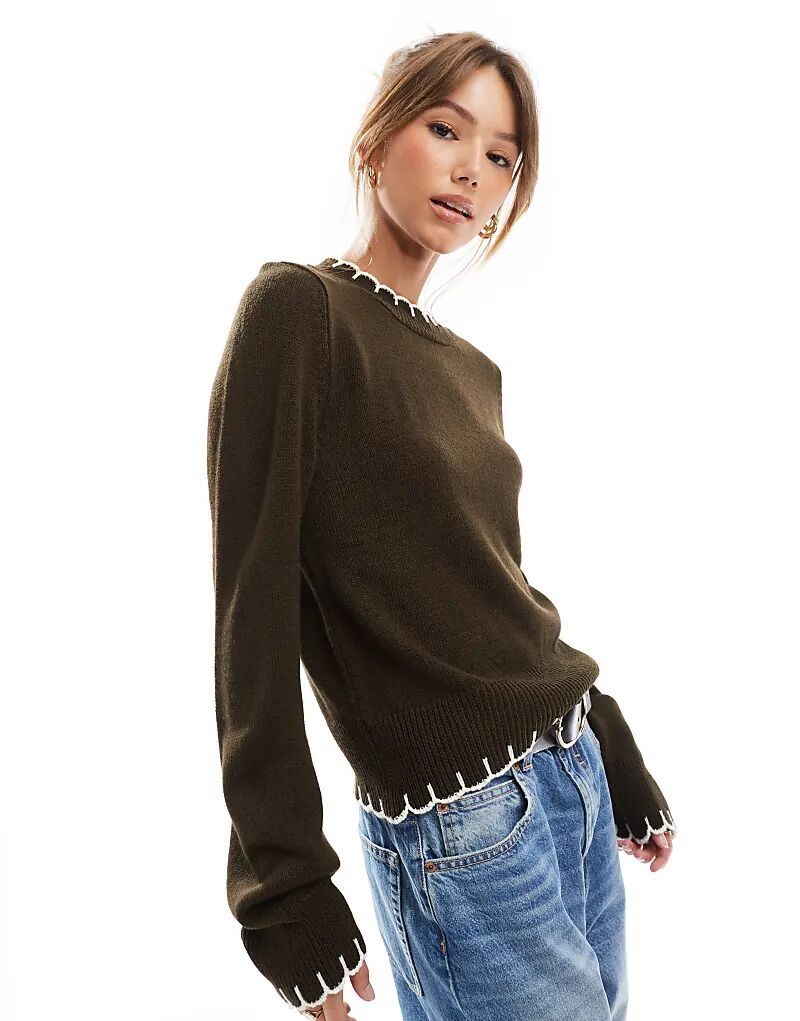 Вязаный джемпер с отделкой гладью в шоколадно-коричневом цвете ASOS DESIGN