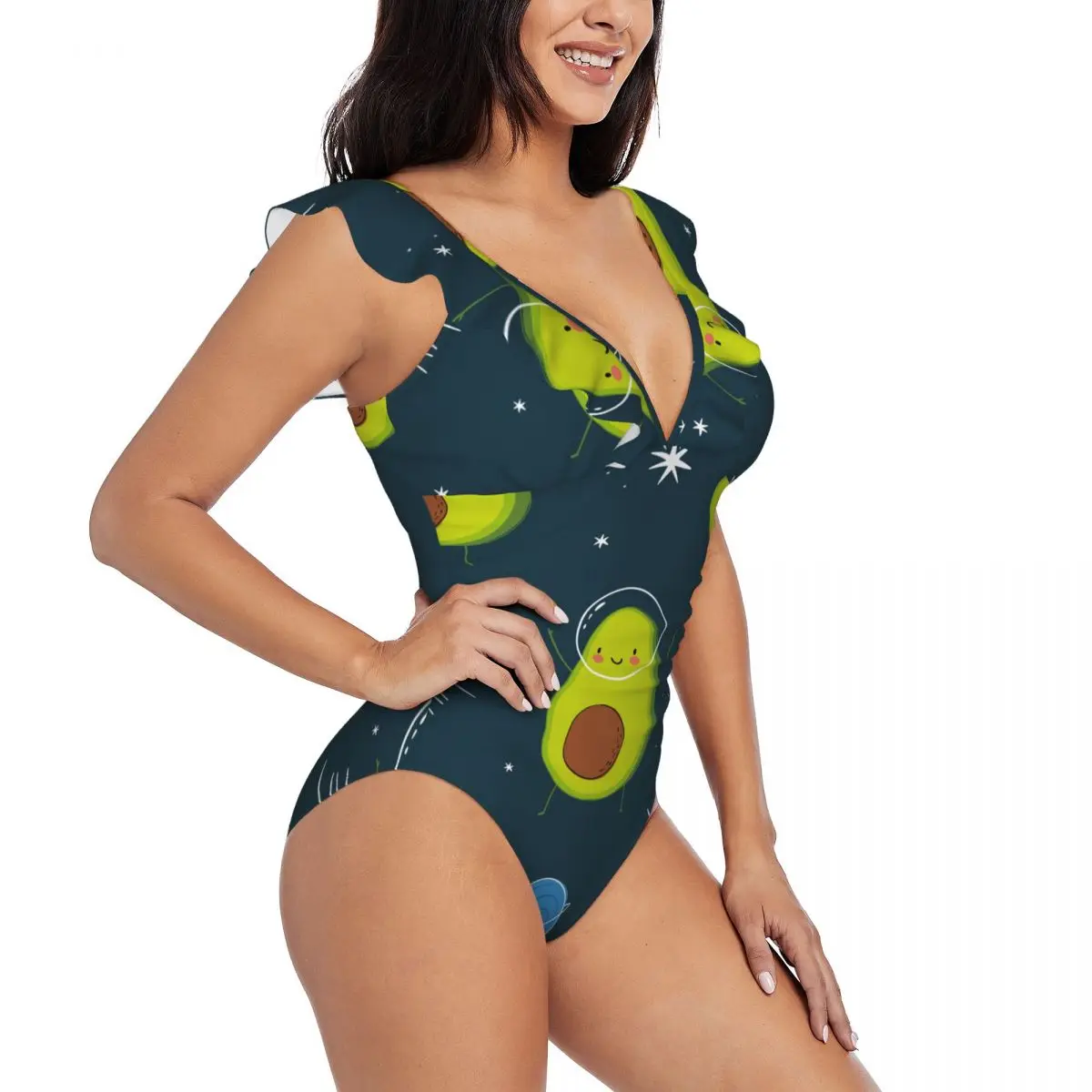 Слитный купальник с оборками, женский купальник с авокадо в космическом стиле, пикантный Монокини со шнуровкой, купальник для девушек, пляж...