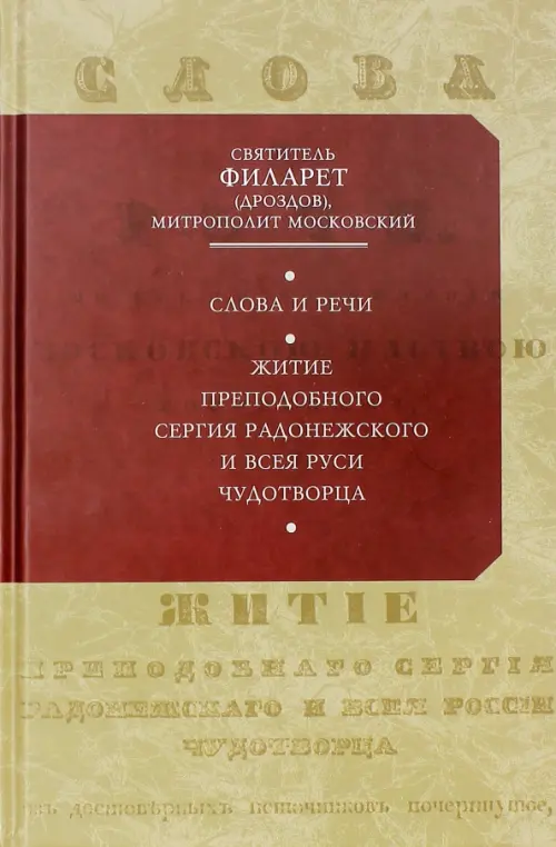 Настоящее издание является репринтным воспроизведением книги "Слова и речи во время управления московскою паствою говоренные и жития преподобного Сергия Радонежского и всея России и чудотворца из достоверных источников почерпнутое, Синодальным членом Филаретом московским (1835)"