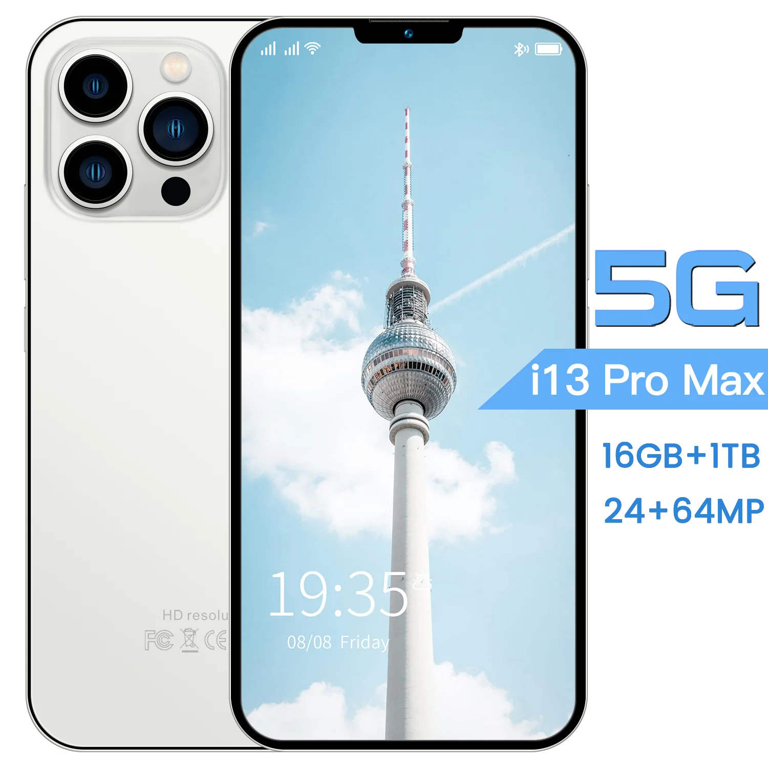 Смартфон I13 Pro Max, 6,7 дюйма, 16 ГБ ОЗУ + 1 ТБ ПЗУ, 6800 мАч, две SIM-карты, функция распознавания лица, 48 Мп + 64 мп