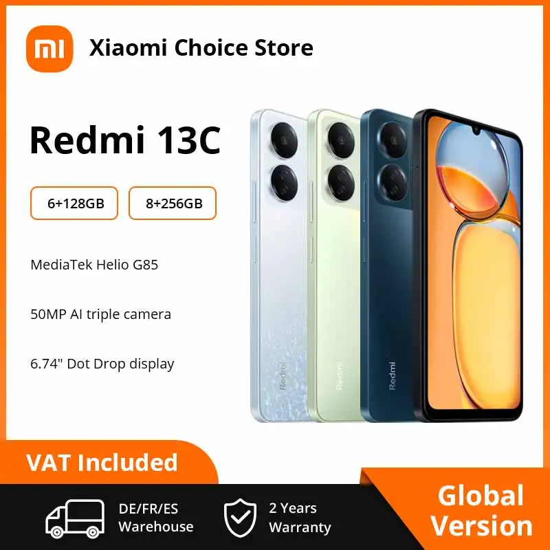 Смартфон Xiaomi Redmi 13C, 8-ядерный процессор MediaTek Helio G85, экран 6,74 дюйма, 90 Гц, камера 50 МП, аккумулятор 5000 мАч