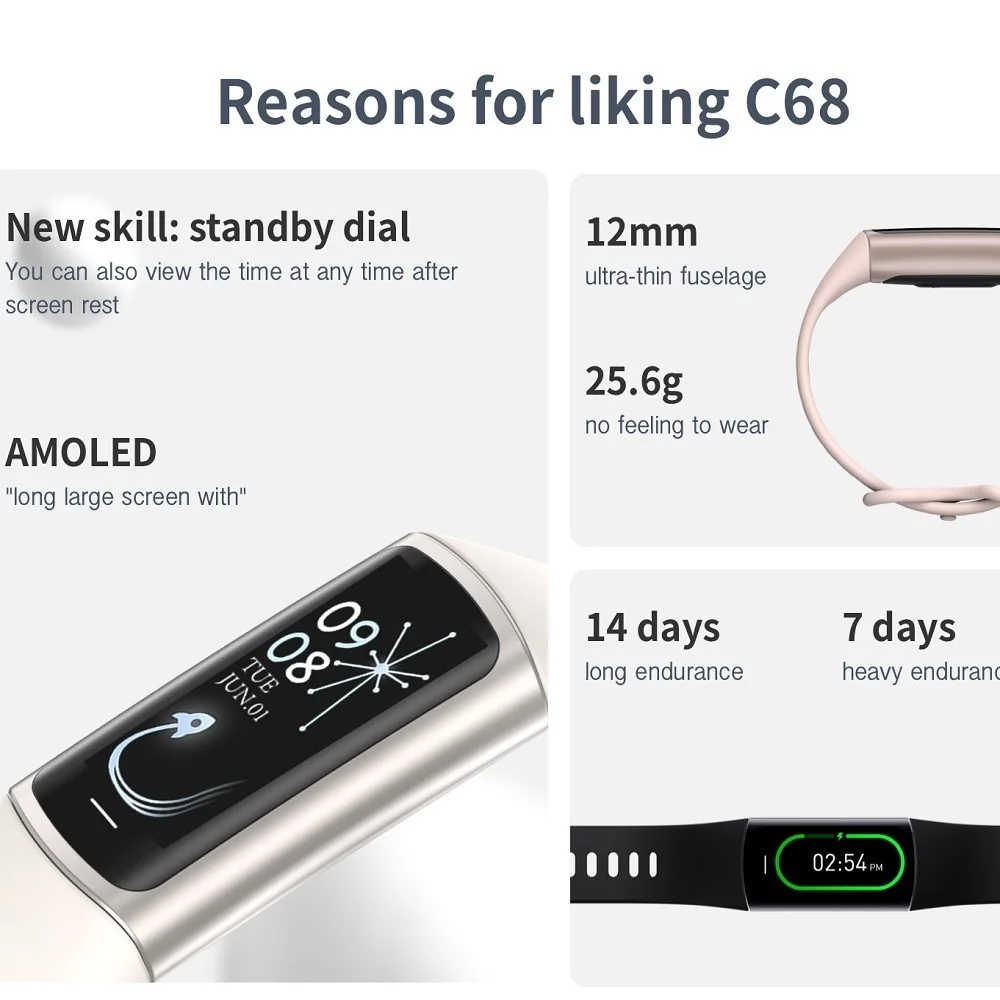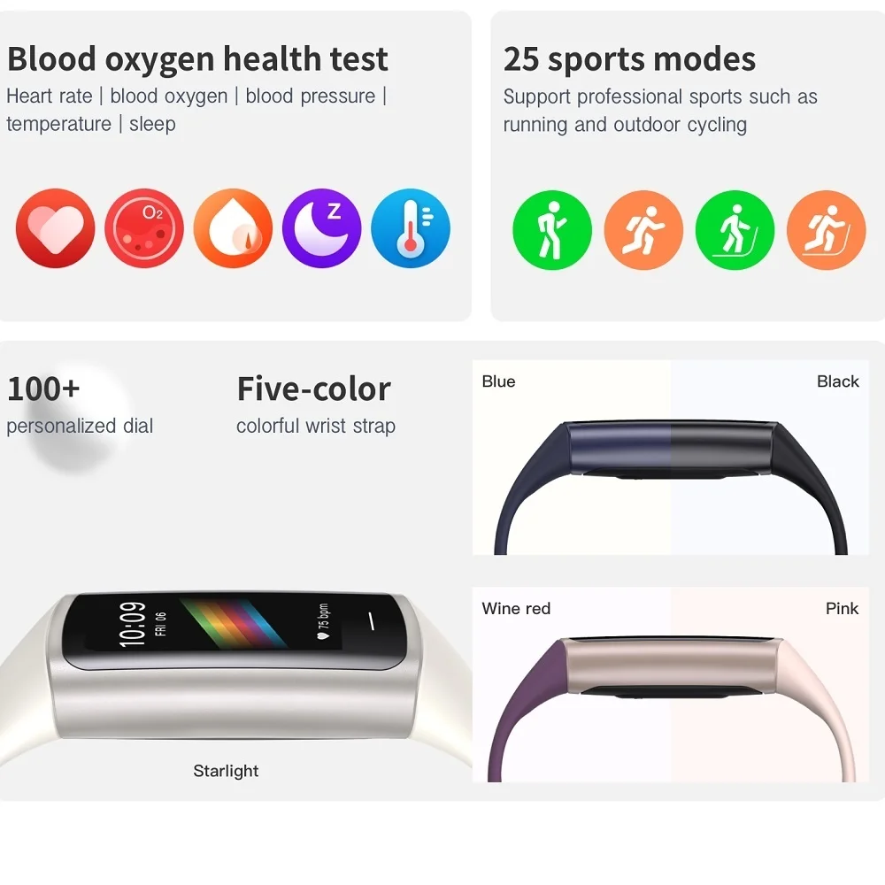 Смарт-браслет для мужчин и женщин, 2023 дюйма, AMOLED Монитор артериального давления