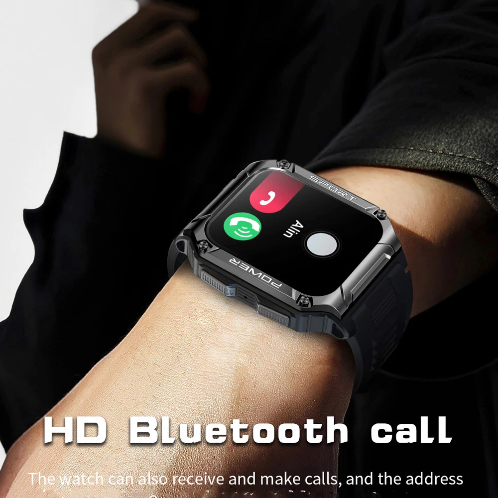 Смарт-часы мужские с поддержкой Bluetooth и пульсометром, экран 1,95 дюйма