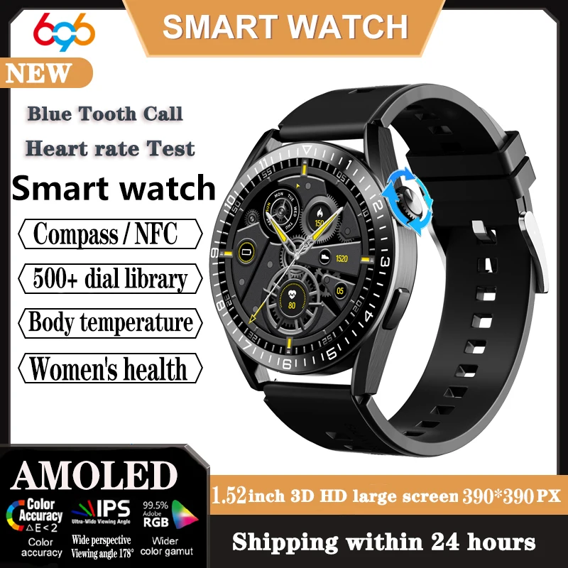 Смарт-часы AMOLED, мужские водонепроницаемые умные часы с монитором здоровья