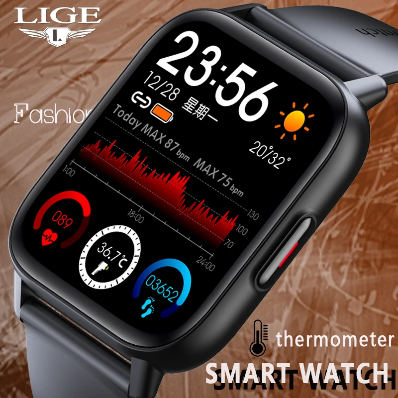Смарт-часы LIGE мужские/женские с сенсорным экраном 1,69 дюйма и датчиком температуры тела