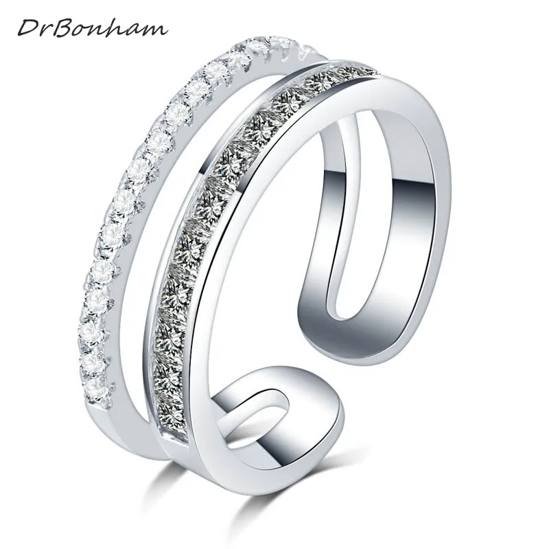 Never fading silver color rainbow Finger Ring micro pave square round AAA Zircon double row anillo Women Anniversary gift DR1726