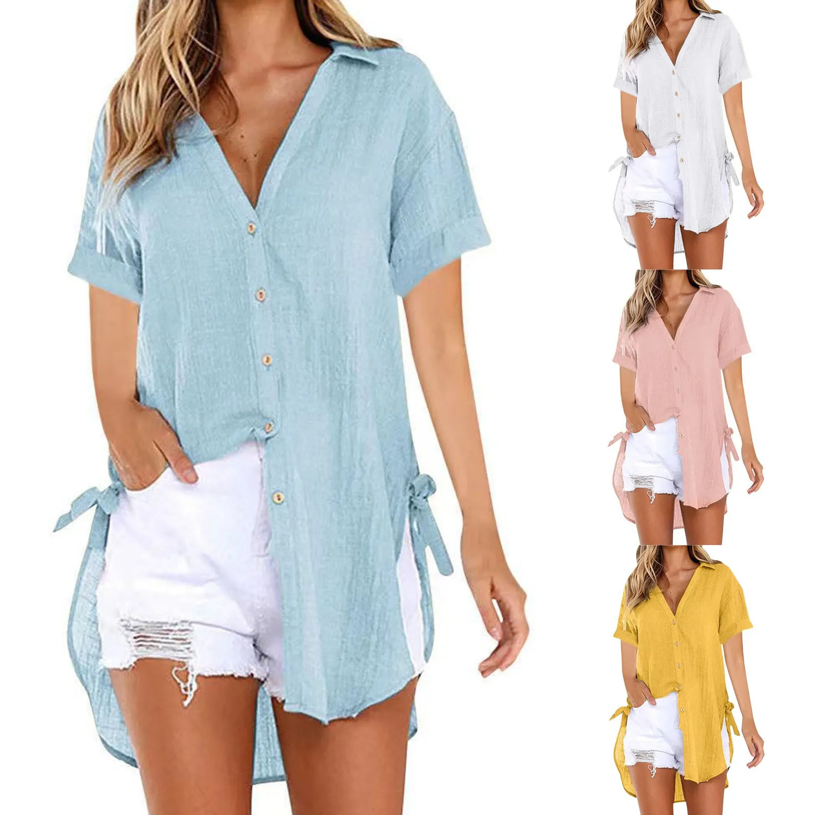 Leisure White Yellow Shirts Button Cardigan Top Lady Loose Short Sleeve Oversized Shirt Womens Blouses Casual Tunic Blusas