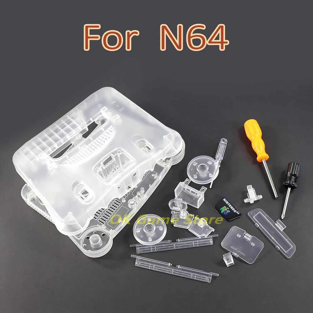 Сменный Пластиковый корпус для N64, 1 комплект, прозрачная внешняя крышка с отверткой и кнопками для контроллера Nintendo 64
