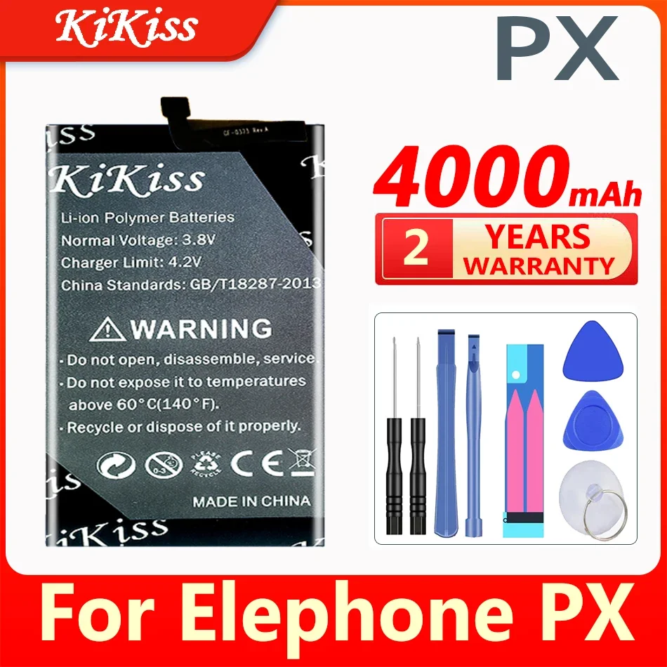 Сменный аккумулятор KiKiss 4000 мАч для Elephone PX, телефонные Аккумуляторы для ELEPHONE- P X, 4 ГБ, 64 ГБ, смартфон MKT MT6763, 6,53 дюйма