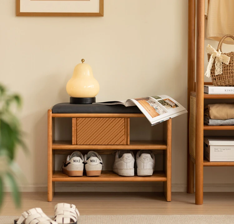 Сменный стул из массива дерева, Вишневое дерево, скандинавский вход, стеллаж для обуви, мягкая сумка