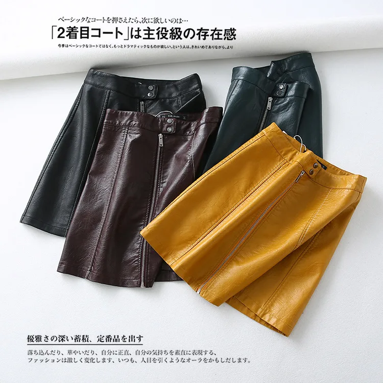 One's Fashion Solid Color Elegant Versatile High-waisted Pu Half-length A- line Sheath Leather Skirt Entity