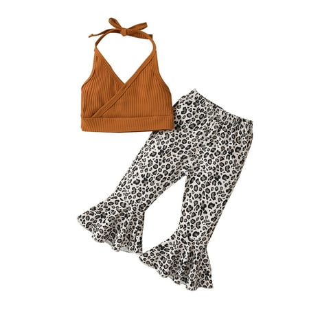 Wassery Toddler Baby Girls Summer Clothes Set 2pcs Sleeveless Hanging NeckTop Tank+Leopard Print Bell-Bottoms Pants 3M-3T