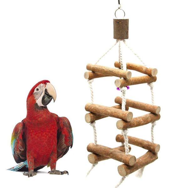 other bird supplies pet parrot wooden climbing ladder bell hammock hanging swing cage chew toy
