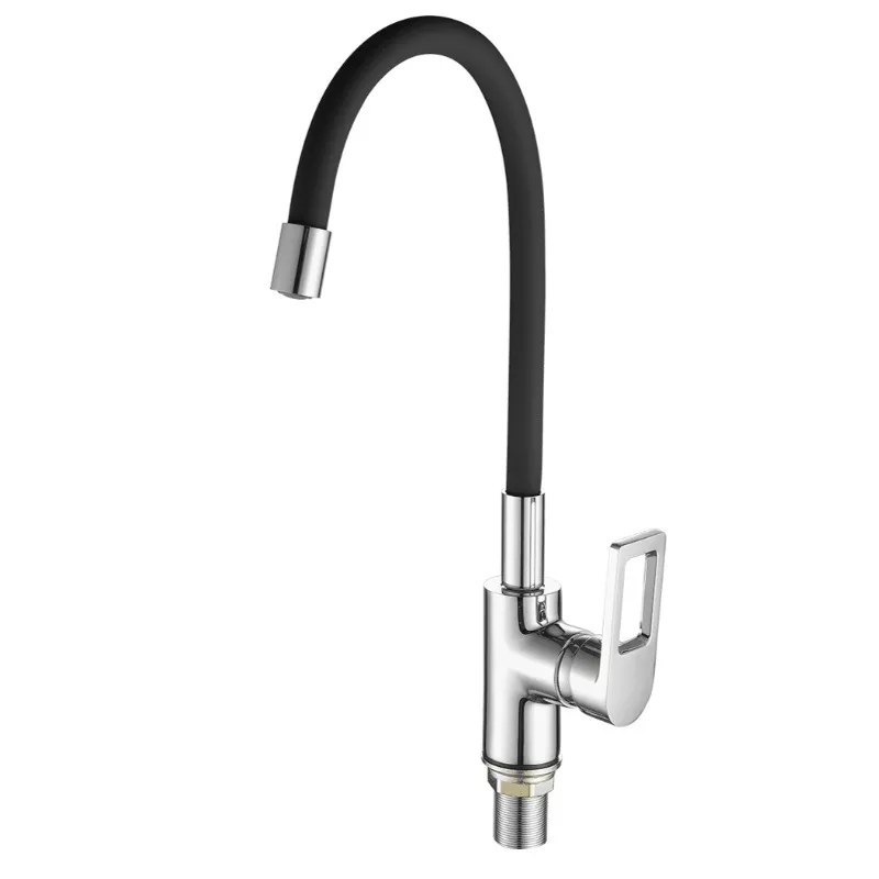 Смеситель для кухонной мойки Fashun A4253+B04 с гибким изливом хром, черный
