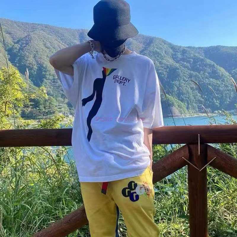 Fashion Designer Clothing Tees Rock Tshirt Galleryes Depts New Rainbow Half Portrait Printed High Street American Hot Silver Letter T-shirt Sportswear 23ss, White