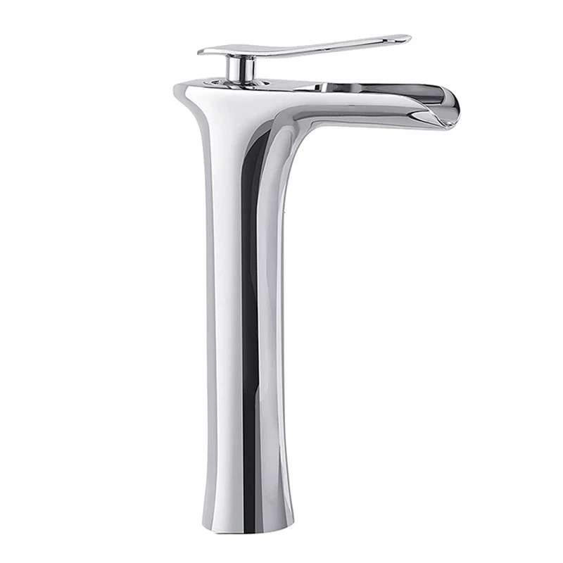 Смеситель для раковины и умывальника, хромированный Высокий кран «Водопад» для ванной комнаты