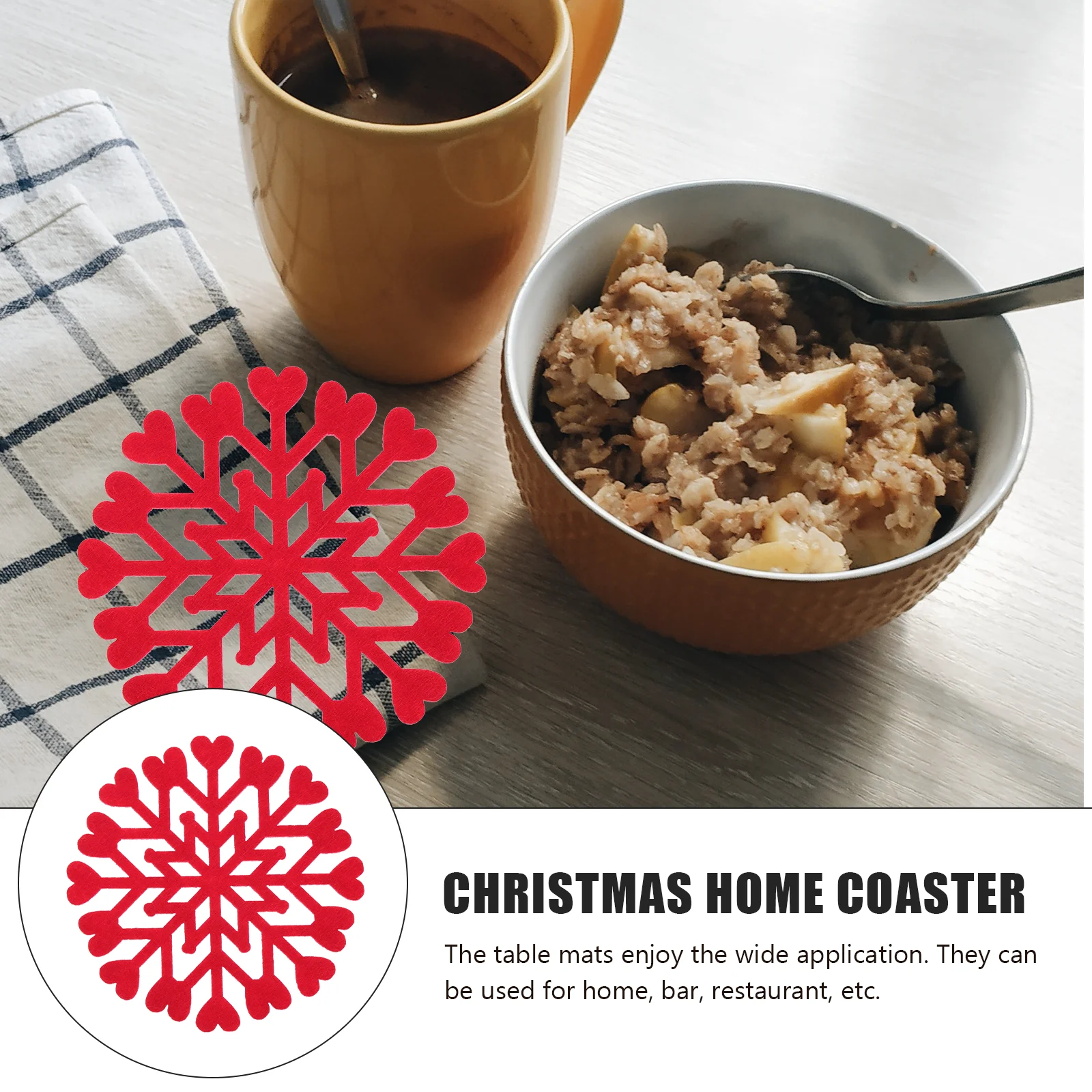 12 Pcs Snow Coaster Felt Pad Snowflake Decor Mats Coasters Cup Decoration Placemat Placemats Christmas