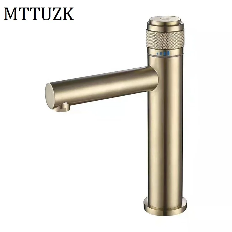 Смеситель для раковины MTTUZK из твердой латуни с матовым золотым покрытием, черный/хром, смеситель для раковины с нажимным переключателем, смесители для горячей и холодной воды